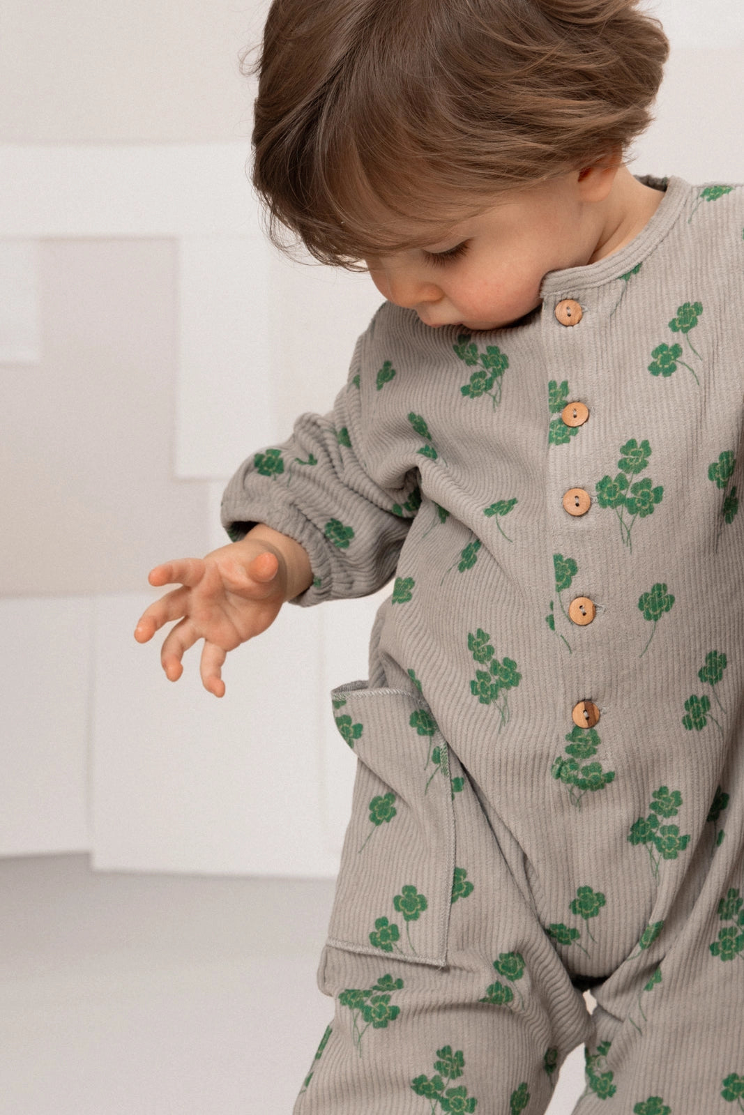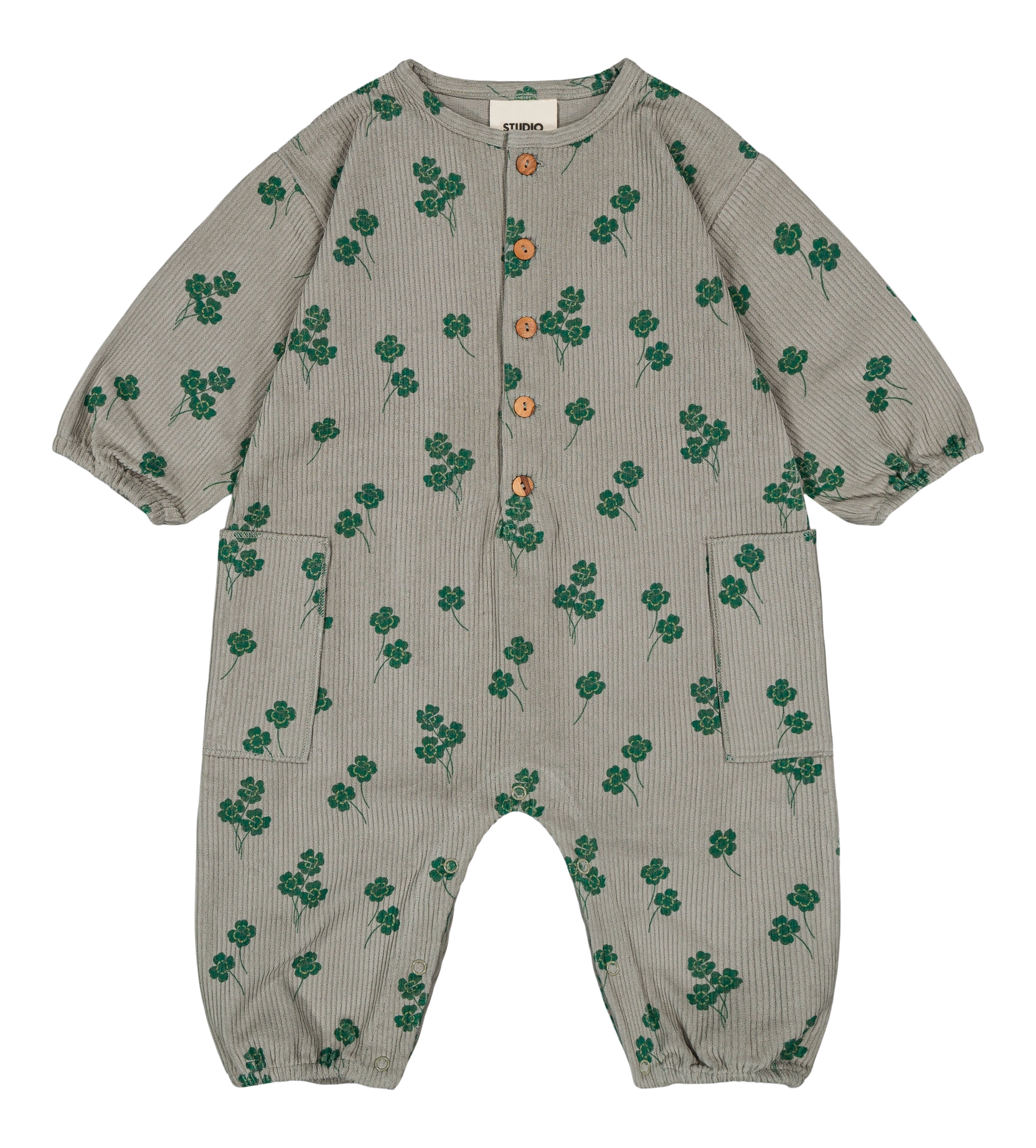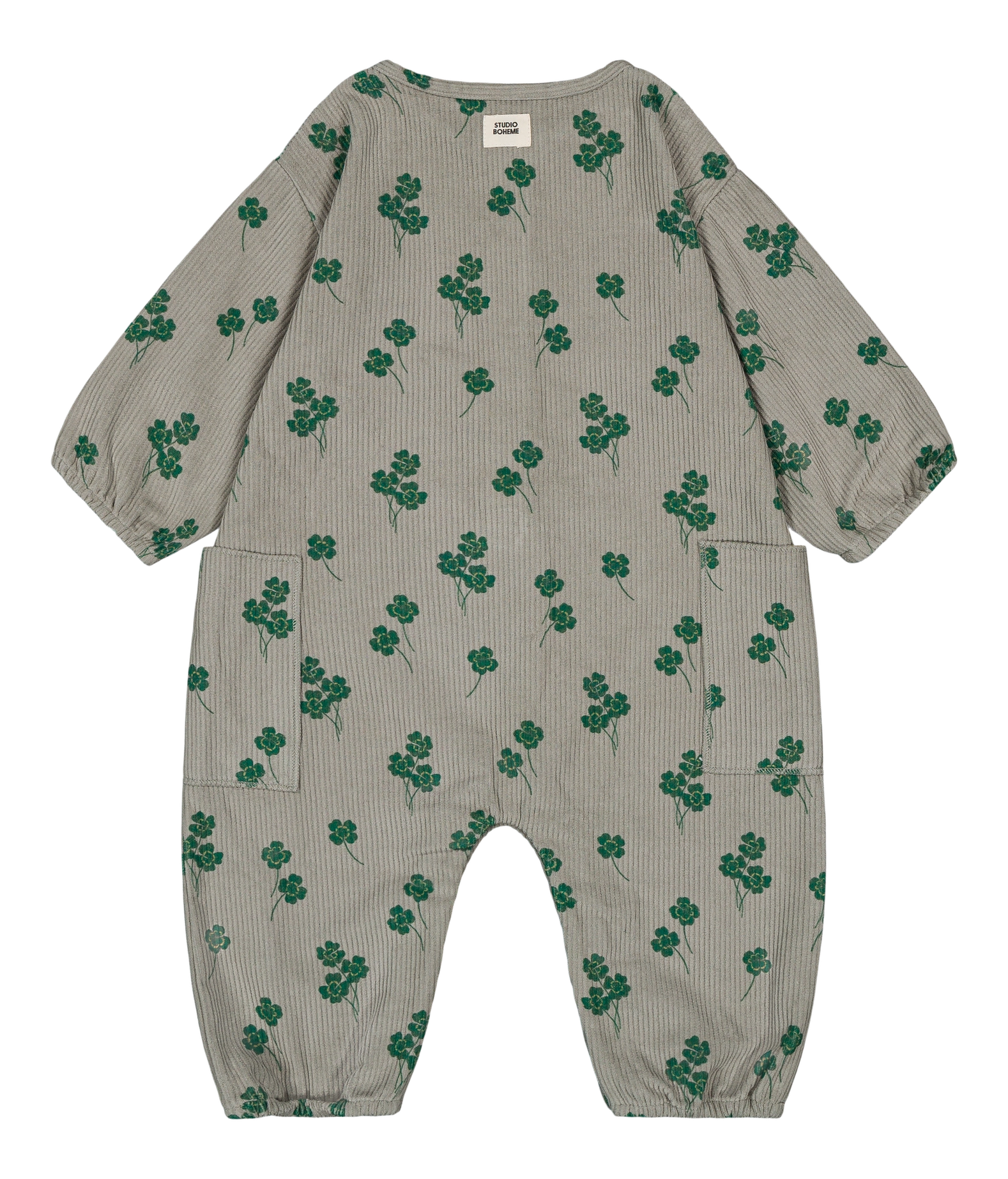 Jumpsuit van biologisch katoenen corduroy, unisex en zeer comfortabel. 2 grote zijzakken. Drukknoopjes in het kruis voor gemakkelijk aan- en uittrekken. Houten knopen aan de voorkant. Decoratief Studio Bohème-label op de achterkant. Gemaakt in Portugal.